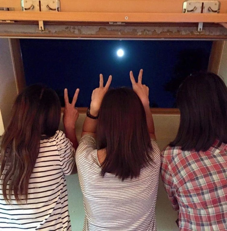 日本的月亮也很大也很圓啊!不過我還是想跟家人一起吃飯(攤手)但是還好我有另外三個傻的朋友一起在二世古吃飯慶祝中秋節(不過沒有月餅T.T)我很高興認識你們!不然的話我應該悶到hihi。John san,對不起我常常嗆你,不過我還是很喜歡你的(唇印)